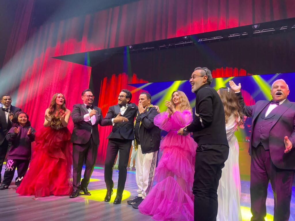 و الجدير بالذكر أن فؤاد قد فوجئ بنزول حلمي من علي خشبة المسرح ليأخذ فؤاد من يده ليعتلي المسرح و يحي الجمهور السعودي معه و مع أبطال العمل و هو ما أصاب فؤاد بالارتباك و التوتر لأنه لم يكن مستعداً لصعود المسرح و حاول الأكتفاء بإرسال تحيته الحارة مصفقا إلي حلمي إلا أن حلمي أصر علي صعود فؤاد معه إلي المسرح وسط احتفاء كبير من الجمهور السعودي لما يتمتع به فؤاد من جماهيرية كبيرة لدي الجمهور السعودي..حيث يذكر أن أول فيديو كليب يذاع علي شاشات التليفزيون السعودي سابقا كان أغنية الحب الحقيقي للفنان محمد فؤادم الرياض..و جاء ذلك أثناء تواجد فؤاد بالسعودية ..و قد أشاد فؤاد بجودة العرض و عبقرية الموضوع و الإخراج و أداء الممثلين و علي رأسهم النجم أحمد حلمي..